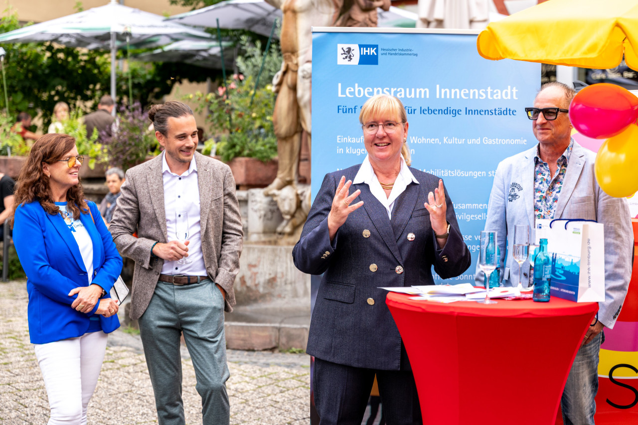In diesem Jahr setzte die Kampagne mit einem ID.Buzz im auffälligen Heimat shoppen-Design ein starkes Zeichen für regionalen Einkauf, Nachhaltigkeit und lebendige Innenstädte. Bei der Auftaktveranstaltung in Limburg Anfang August wurde das E-Fahrzeug der Öffentlichkeit vorgestellt – ein echter Hingucker, der für drei Monaten durch alle hessischen IHK-Bezirke tourt. Eröffnet wurde der Auftakt von IHK-Hauptgeschäftsführerin Monika Sommer, die mit einem herzlichen Grußwort in die Kampagne einstimmte und das Wort an Kirsten Schoder-Steinmüller, Präsidentin des Hessischen Industrie- und Handelskammertags, übergab. Sie machte deutlich, dass mit dem elektrisch betriebenen Fahrzeug nicht nur die Botschaft der Kampagne sichtbar auf die Straße gebracht wird – sondern auch, dass Zukunft, Nachhaltigkeit und Heimatverbundenheit untrennbar zusammengehören.