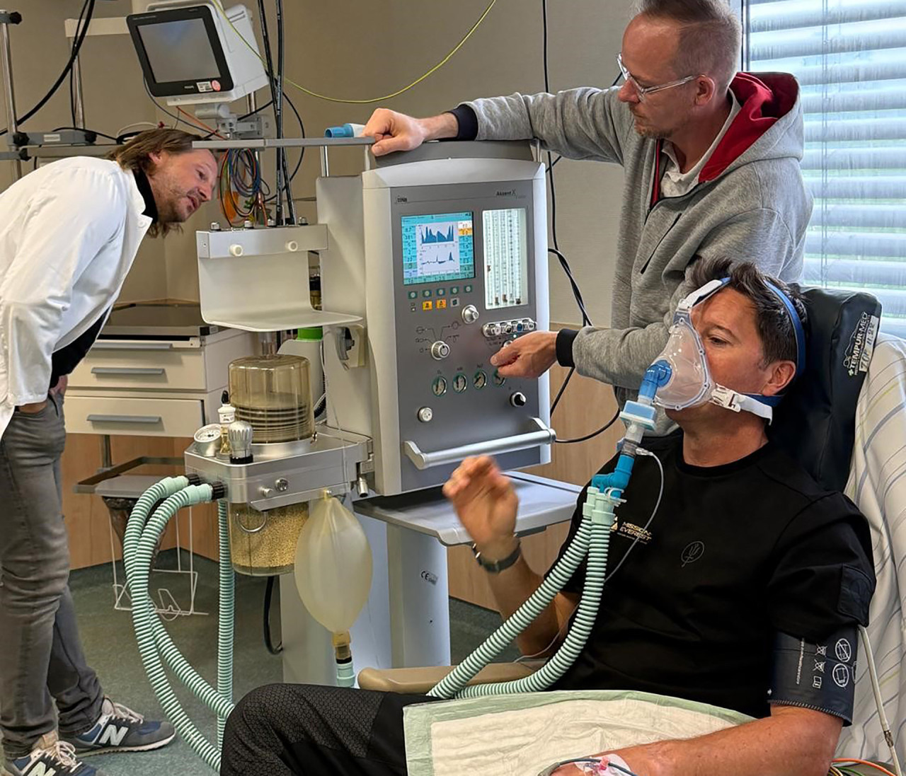 Dr. Fries erkannte Parallelen zu seinen eigenen Forschungen an der Universitätsklinik Aachen. Dort untersuchte er Einsatzmöglichkeiten von Xenon in der Medizin, unter anderem in der Behandlung von Patienten nach Herzstillstand. Der positive Einfluss des Edelgases auf die biologische Aktivität der Körperzellen und seine neuroprotektive Wirkung faszinierten den Mediziner nachhaltig: „Das Edelgas Xenon sollte eigentlich keinerlei Reaktionen auslösen“, erklärt Dr. Fries. „Dennoch hat es vielfältige biologische Wirkungen.“ So beispielsweise auch auf die Leistungsfähigkeit des Körpers. Kurzerhand kontaktierte Dr. Fries Lukas Furtenbach. Die beiden begannen an der Wirkung des Gases zur Vorbereitung auf extreme Höhen zu forschen und stellten eine deutliche Verbesserung der physiologischen Anpassung an große Höhe fest.