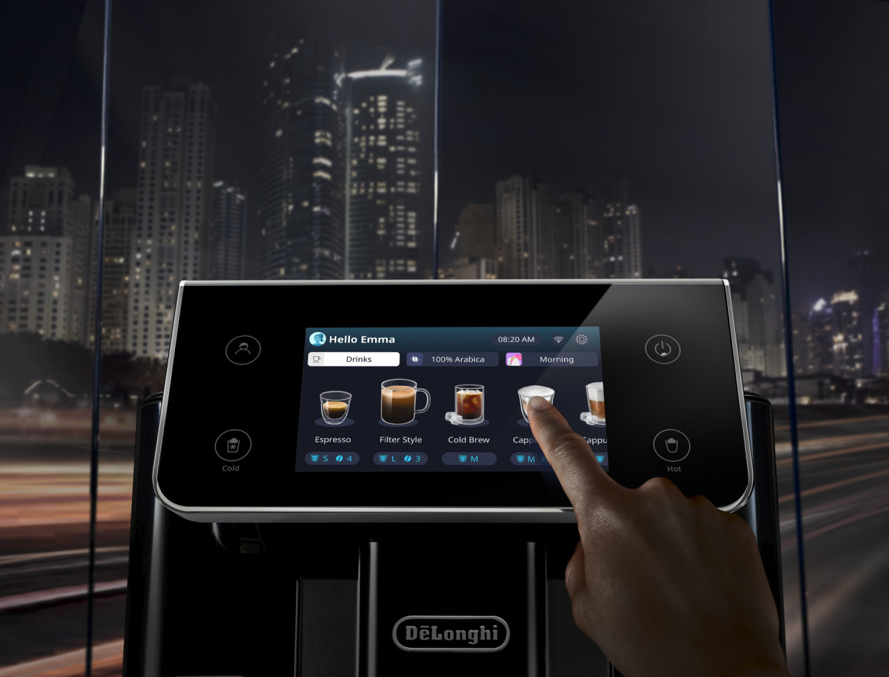 Doch Genuss kennt keine Tageszeit: Ob vom Sofa, aus dem Homeoffice oder während die Gäste am Tisch Platz nehmen – dank smarter Konnektivität lässt sich der neue Kaffeevollautomat von De’Longhi jederzeit intuitiv per App steuern.
